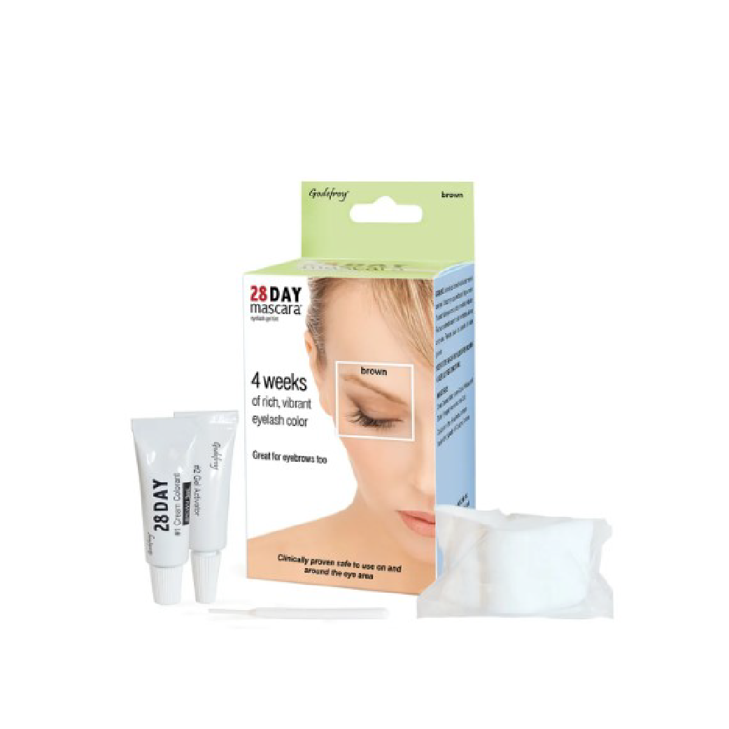 28 Day Mascara is a non toxic eyelash & eyebrow tint that contains no coal tar derivatives or hydrogen peroxide bleaching agents. This fast acting, gentle formula does not damage or irritate eyelashes. Delivers rich, long lasting color for up to 4 weeks.