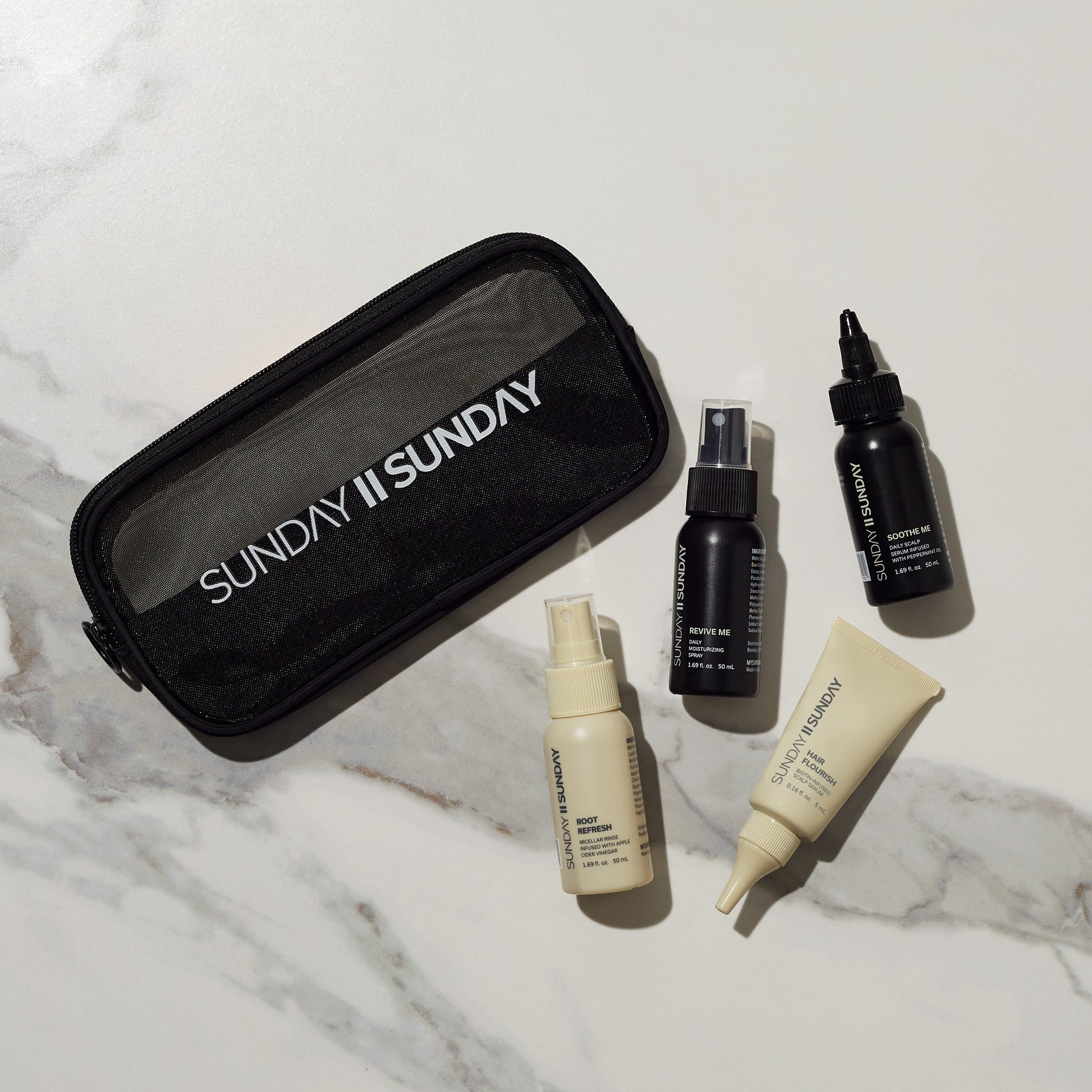 Our sweat-busting best sellers in one time-saving bundle so you can bounce back after workouts with great hair and a clean scalp, no shower required. Includes our luxe SUNDAY II SUNDAY mesh bag, so your minis can travel in style!