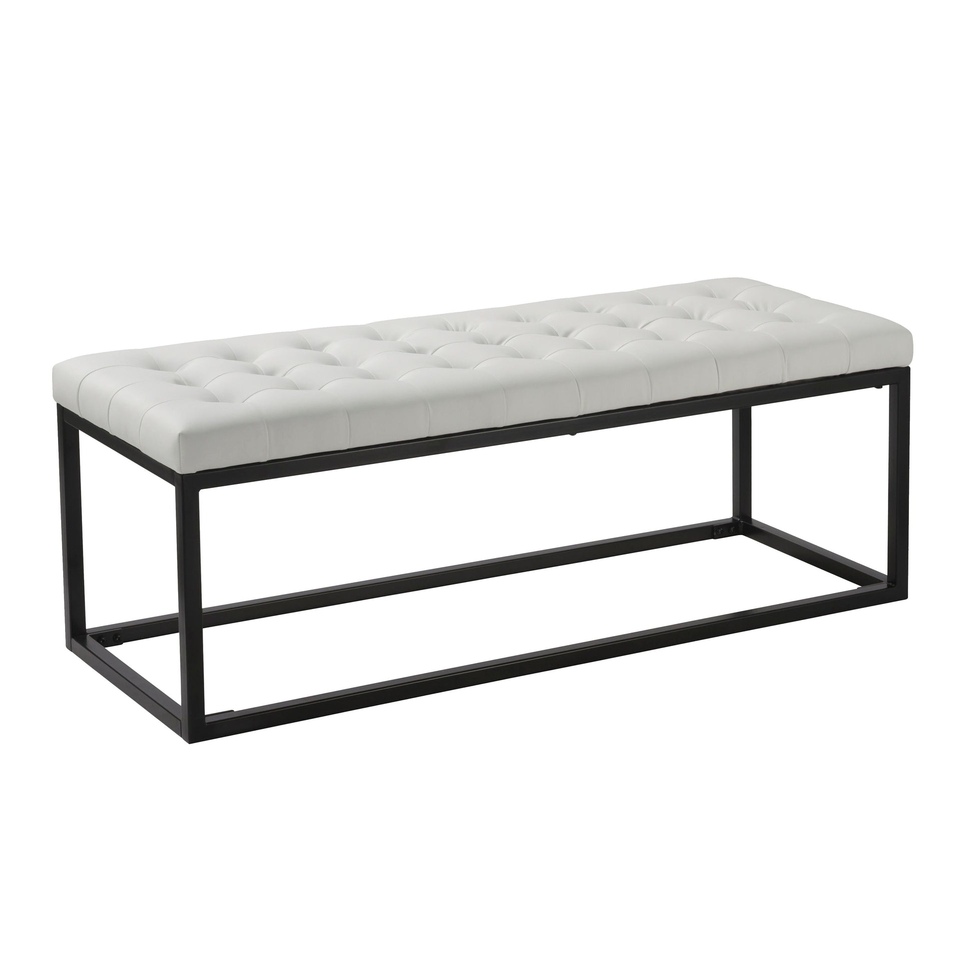 Add a contemporary tone to your home with the Marlena Side Bench from Porthos Home. Crafted using high quality polyurethane leather, a button tufted design, a foam cushion, and a sturdy steel base, this bench is a natural fit in at the foot of your bed, in your entryway, or entertainment center. The construction provides a firm yet comfortable seat, while the use of open space create modern effect.